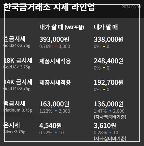 2024년 3월 8일 기준 금값 오늘시세